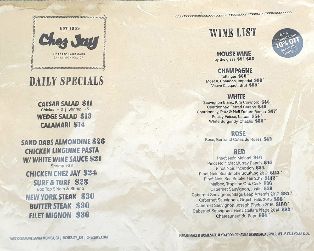 Whether you’re a local or a visitor exploring Santa Monica, Chez Jay promises not just a meal, but a quintessentially Californian dining experience. With reviews calling it a “quaint spot with stories galore,” it’s clear that this steak house is more than just a food destination - it’s a cherished community hub. So, come hungry, bring good company, and revel in the delicious surprises waiting for you at Chez Jay!